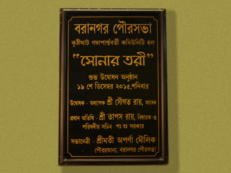 Sonar Tori is a Marriage Hall owned by Baranagar Municipality for usage of People of Baranagar Municipality which is situated at Ward No.